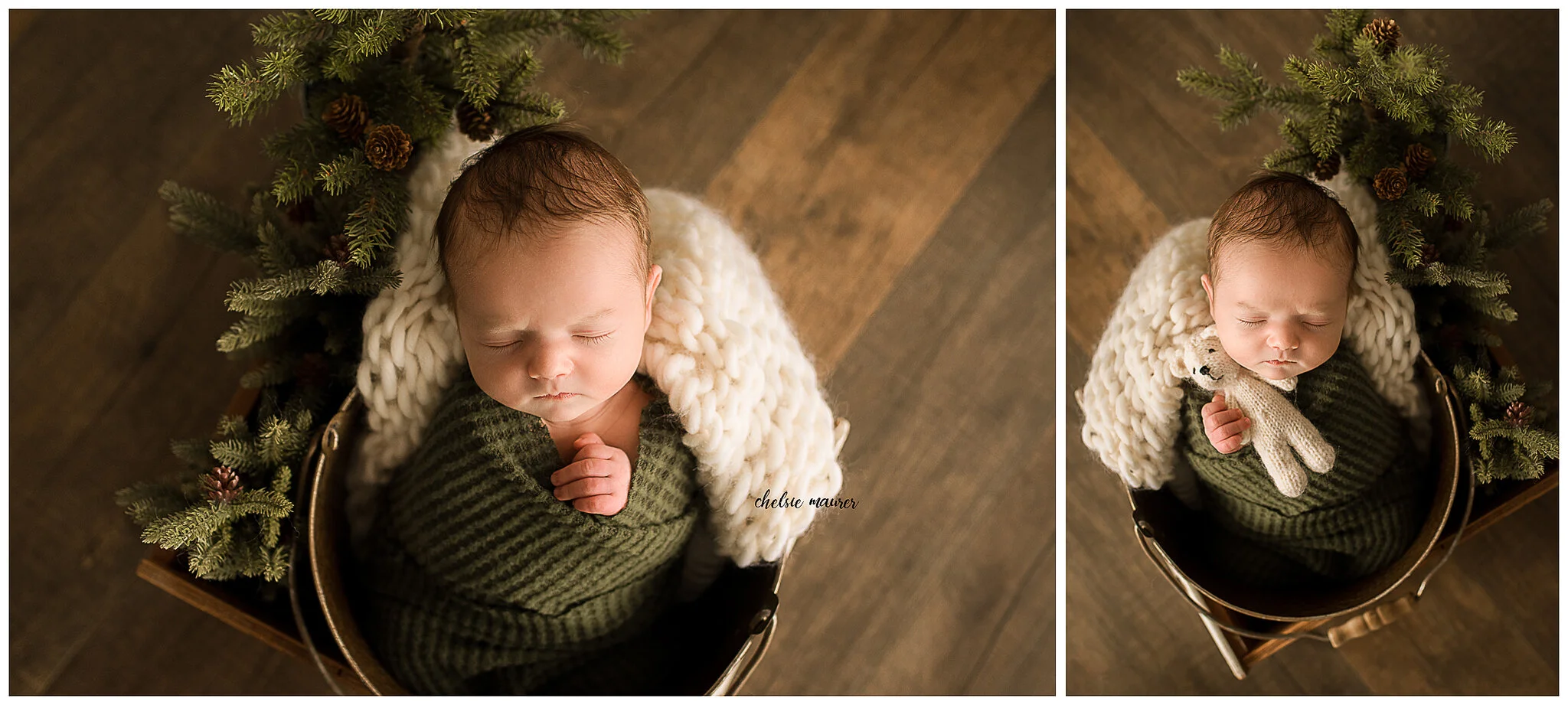 Before this sweet baby was born, his mama and I met just SIX days before his due date to talk about and plan his newborn session. She and her husband loved greens, browns, and blues so his sets were stylized for just that. And he looked so sweet in each and every color! Come to find out, after we met, he was born just two days later!