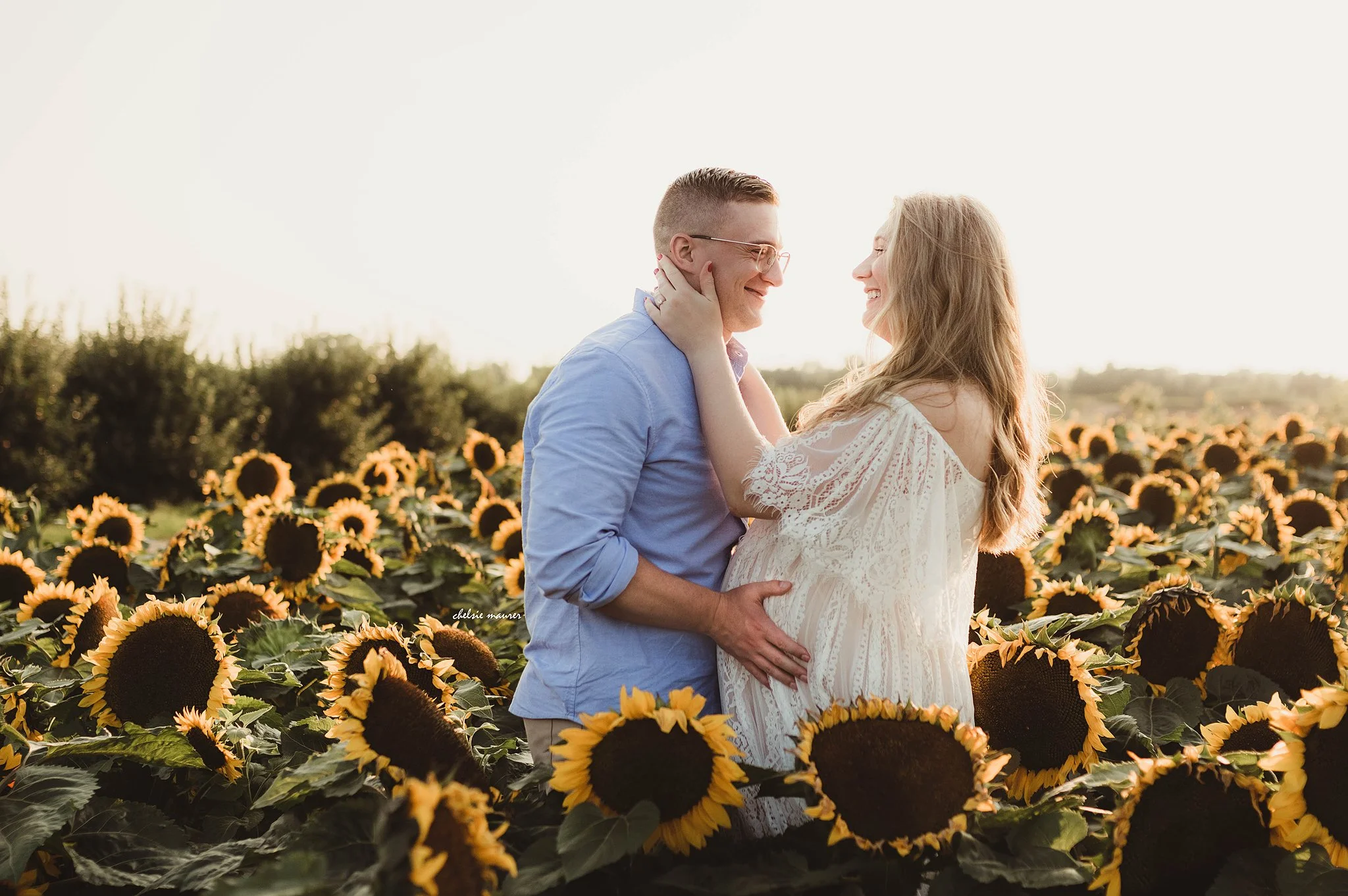 When I met with Amanda and JC for their consultation to plan their maternity and newborn photo shoots, they knew exactly what they wanted for the maternity session - sunflowers and a bit of a boho vibe. Maternity portraits are typically photographed between 30-33 weeks pregnancy, which just so happened to align with when the sunflowers were in bloom!